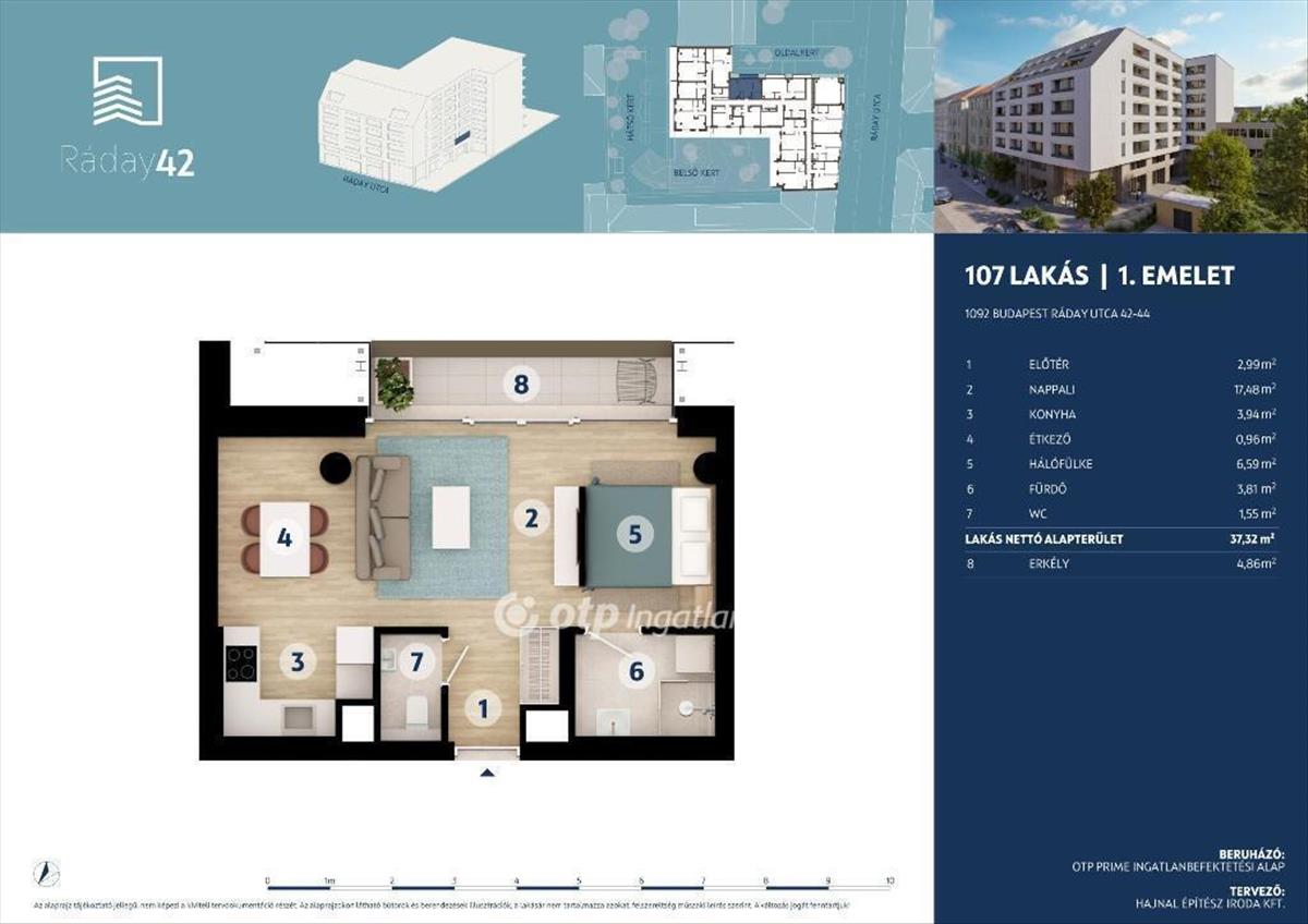 Budapest IX. kerületében, a Ráday utca 42. Szám alatt kínálunk eladásra egy 1 szobás, 37, 32 nm -es, 4, 86 nm terasszal rendelkező lakást, amely egy különleges fejlesztés része. Az épület egy meglévő struktúra újragondolásával, magas műszaki tartalommal és környezettudatos megoldásokkal születik újjá.