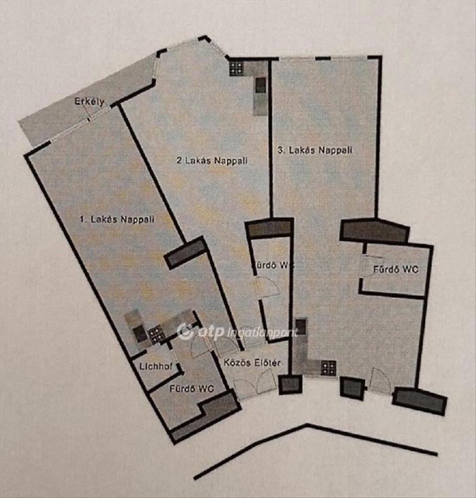 Egy nagyobb lakásból lett kialakítva ez a három külön garzon, ügyvédi megosztással.