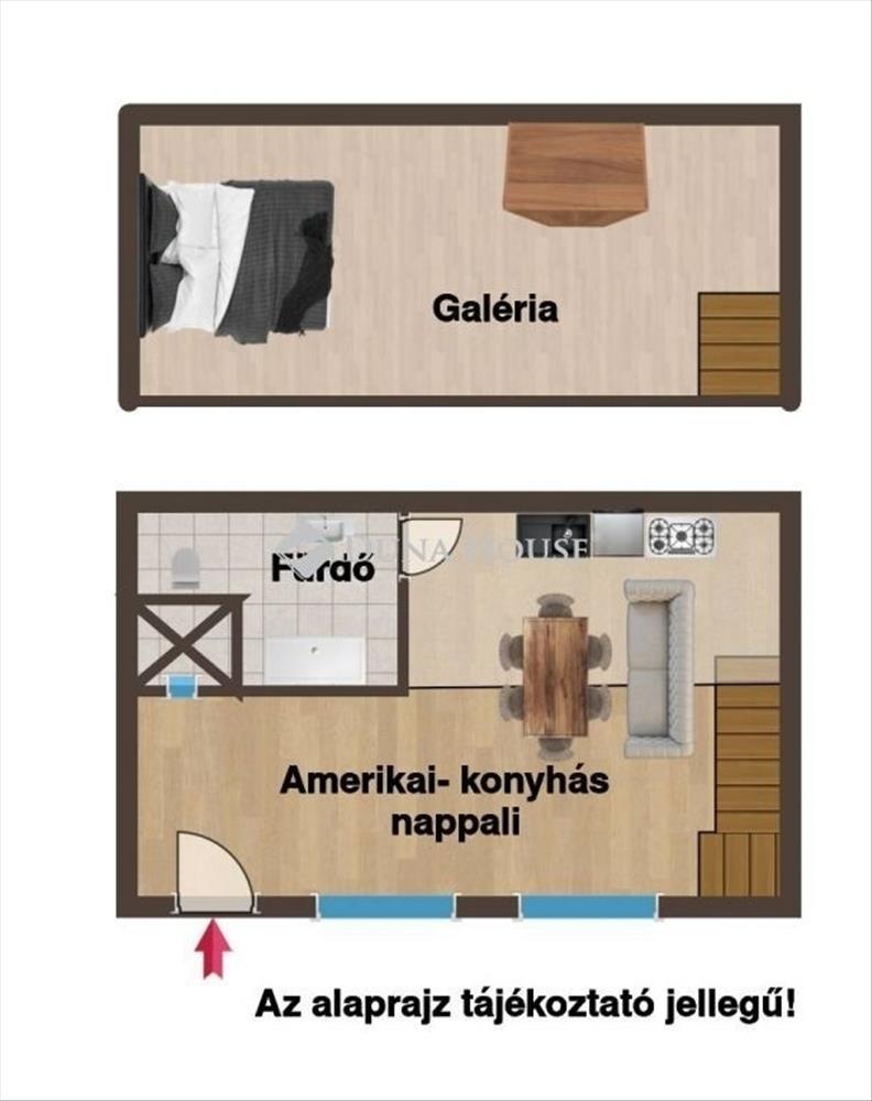 Eladó galériás lakás a Boráros tér közelében!Boráros tér közvetlen közelében eladó egy teljesen felújított, berendezett, egy szobás lakás, amelyhez 14 nm-es galéria tartozik. a lakás alul 207 cm, felül a galéria 183 cm magas, a teljes belmagasság 405 cm, így a térérzet rendkívül tágas. a galérián egy háló rész és egy gardróbszekrény kapott helyet, miközben a nappali szabadon marad.
