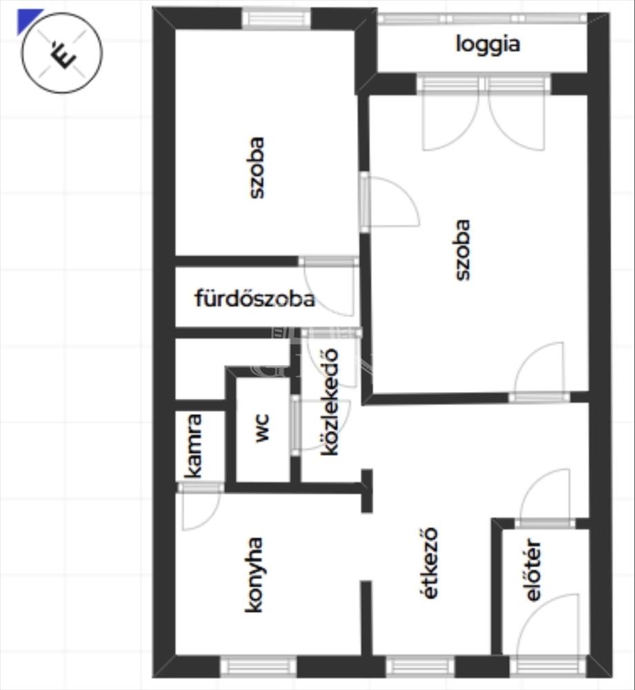 A lakás praktikus elosztású: az előszobából egy tágas hall nyílik, ahonnan külön megközelíthető a konyha és a nappali. a hallból egy kisebb közlekedő vezet a kádas fürdőszobához és a külön helyiségben kialakított WC-hez. a nappaliból egy kisebb szoba nyílik, amelyből a fürdőszoba is elérhető. a hallban beépített gardrób biztosít kényelmes tárolási lehetőséget, míg a konyhából egy praktikus kamra nyílik.
