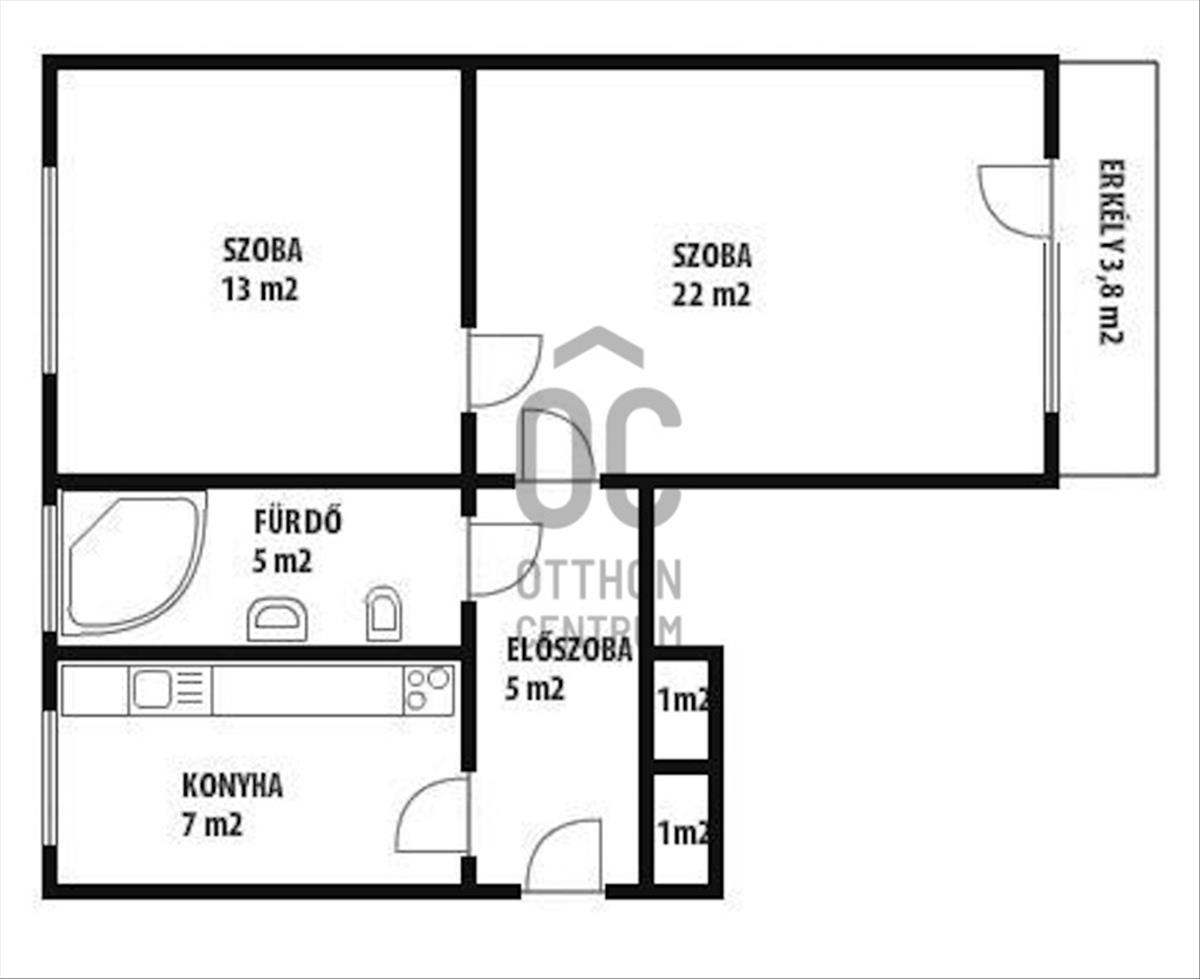 - 55 m², 2 szobás, 3, 8 m² erkély