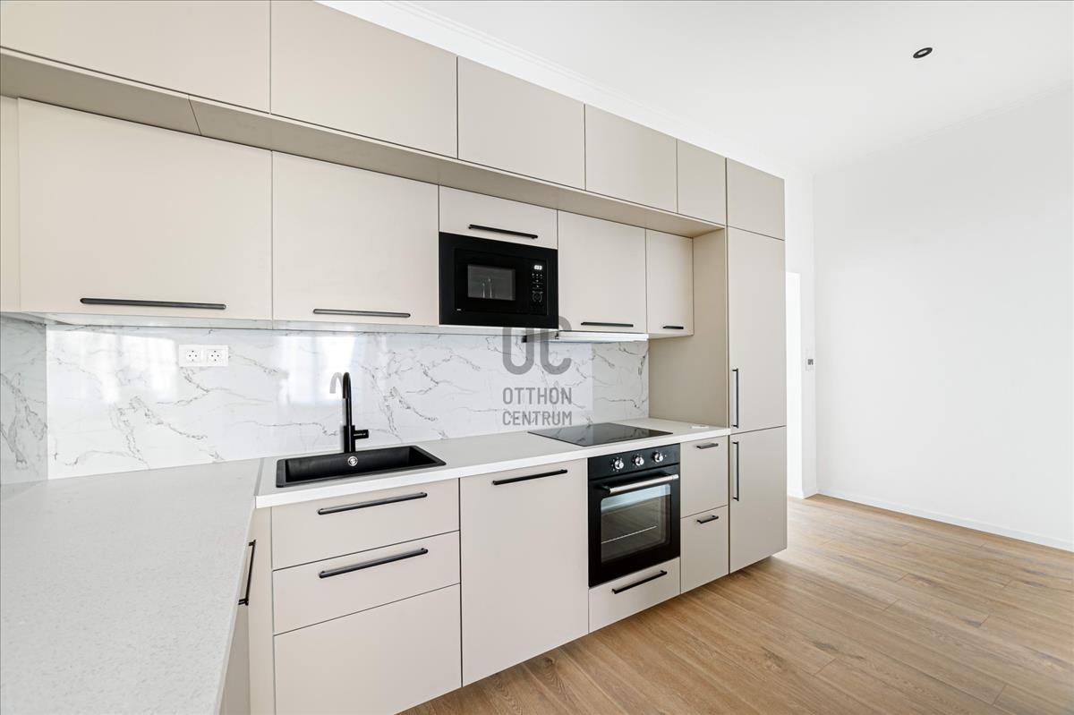 A konyha modern és letisztult, teljesen felszerelt prémium minőségű gépekkel, így a mindennapi használat mellett akár kulináris élményekhez is ideális teret kínál.