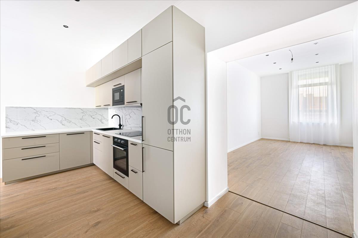 Budapest IX. kerületében, a Ferenc körút egyik legszebb, liftes, 1893-ban épült historizáló bérházának 4. emeletén kínálunk megvételre egy 72 m²-es, utcai nézetű, 2 hálószobás + amerikai konyhás nappalis lakást. Az ingatlan teljes körűen felújított, műszakilag és esztétikailag is újszerű állapotú, ahol a nagypolgári elegancia modern technológiával párosul.LAKÁS