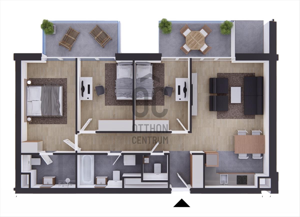 Budapest IX. kerületében, a Metrodom Green lakóparkban eladó egy kiváló elosztású, nappali + 3 hálószobás, 2 teraszos otthon, amely csendes, zöld belső kertre néz, legfelső emeleti, északnyugati tájolású, világos és élhető.
