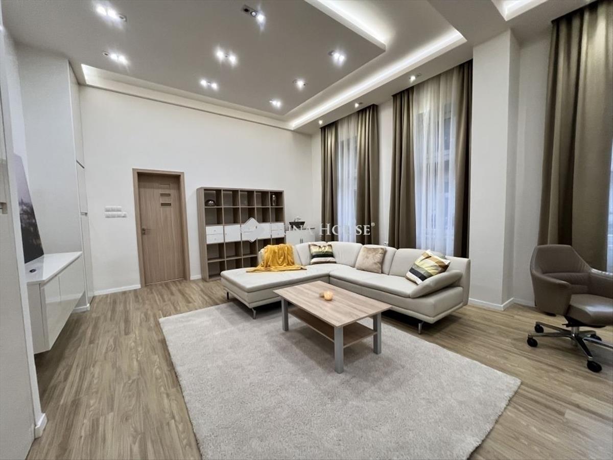 Eladó felújított, belsőépítész által tervezett lakás Belső-Ferencváros szívébenAz Iparművészeti Múzeum és a Ráday utca közvetlen közelében kínálunk megvételre egy kiváló adottságokkal rendelkező, belsőépítész által megtervezett lakást rendezett társasházban. a 68 m²-es, 1. emeleti ingatlan csendes belső udvarra néz, ugyanakkor a dél-nyugati tájolású, nagy ablakoknak köszönhetően rendkívül világos. a lakáshoz egy 1, 5 m²-es erkély is tartozik, a belmagasság pedig tovább erősíti a tágas térérzetet. Az ingatlan 5 éve teljes körű műszaki és esztétikai felújításon esett át belsőépítészeti tervek alapján: megújult a víz-, villany-, fűtés- és hűtésrendszer, valamint az ablakok és ajtók is cserére kerültek. a kialakított belső tér modern, rugalmasan alakítható, többféle élethelyzethez vagy akár irodai funkcióhoz is ideális. Különleges előnye a két fürdőszoba és a külön wc, amely ritkaságnak számít a környéken. a jelenlegi elrendezésben a nagyobb szoba egybenyitva a nappali-konyhával szolgálja a tágas közösségi tér igényét, ugyanakkor a válaszfal és az ajtó könnyedén visszaépíthető, így 2 hálószobás, 2 fürdőszobás + külön WC-s, nappali-konyhás lakás is kialakítható. Az ingatlan tehermentes, 1/1 tulajdonú, azonnal birtokba vehető. Lokáció:A Corvin negyed metró- és villamosmegállói mindössze 3 perc sétára találhatók, a Duna-parti sétány az utca végén érhető el. a közelben park játszótérrel és kutyafuttatóval, valamint aldi, lidl, spar is gyalogosan elérhető. Ez az ingatlan kiváló választás saját otthonnak vagy befektetésnek is, központi elhelyezkedésének, minőségi felújításának és rugalmas hasznosíthatóságának köszönhetően.