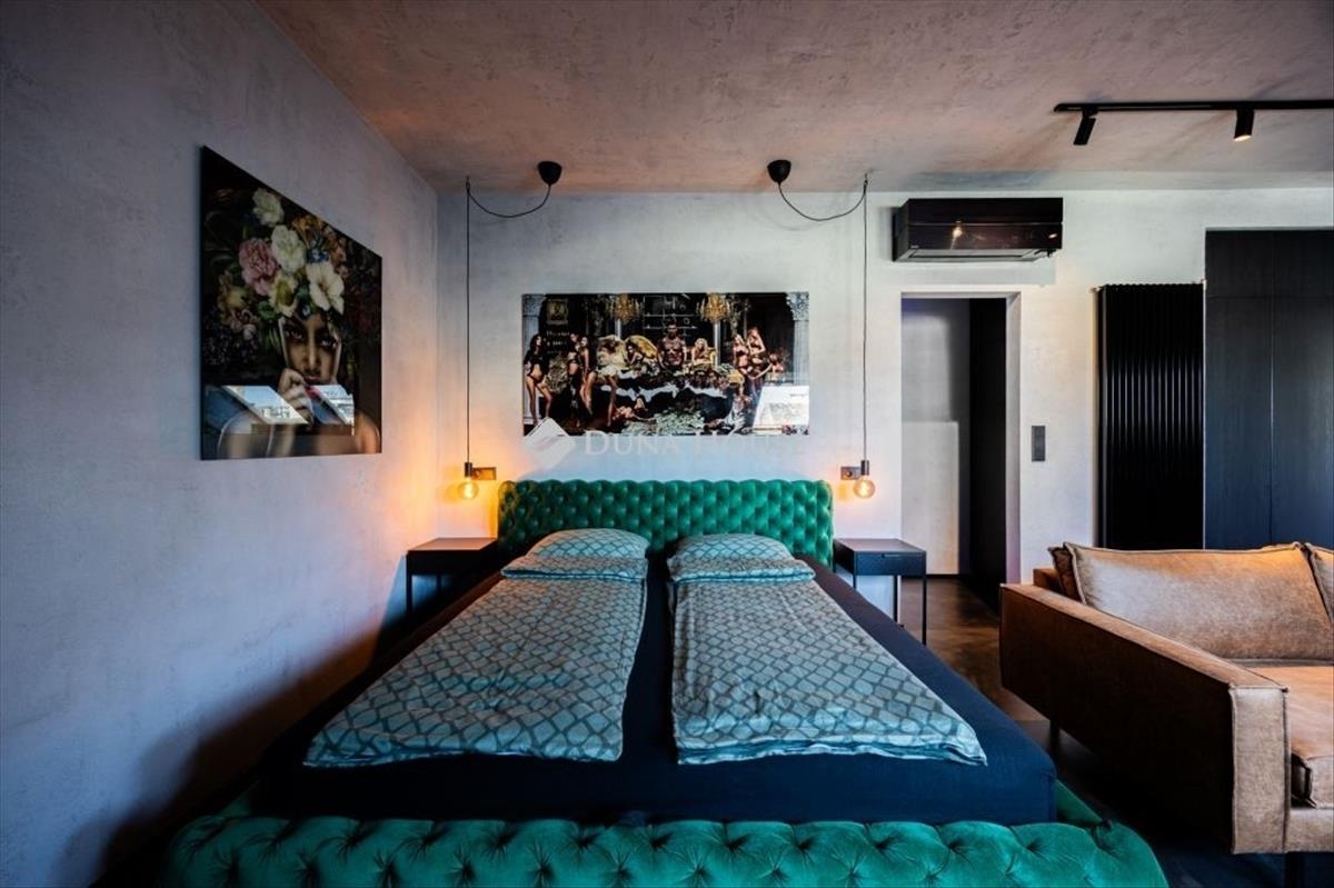 A lakás egy légterű nappali–háló kialakítású, dolgozósarokkal, prémium kare bútorokkal. a modern enteriőrt öntött beton padló és design klímák teszik teljessé.