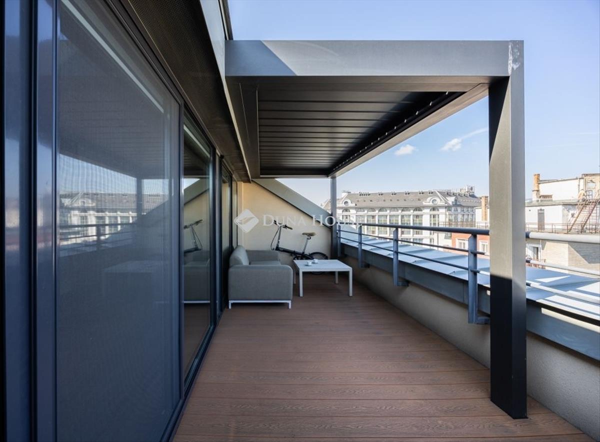 A lakáshoz tartozó tágas, félig fedett terasz pergolával igazi ritkaság: panorámás kilátás nyílik, ameddig a szem ellát ideális helyszín reggeli kávéhoz vagy esti kikapcsolódáshoz.