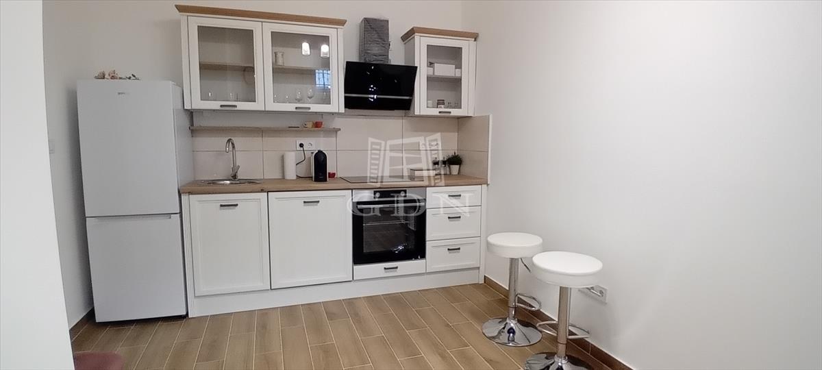 28 nm alapterület: közlekedő, wc, kamra, amerikai konxhás nappali szoba, fürdőszoba