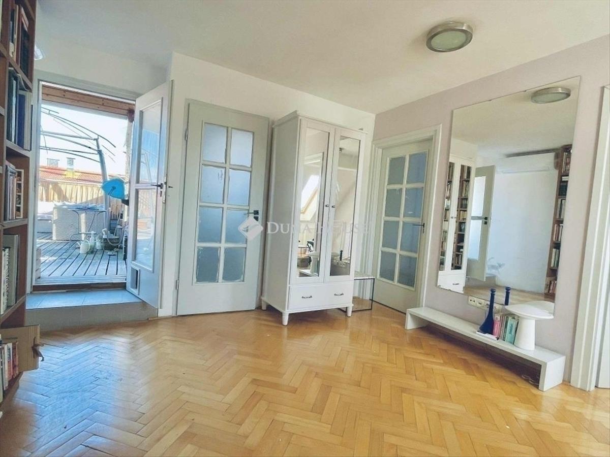 Budai kilátás, pesti élet, panorámás tetőterasz a város felett! 2000-Es években épült hatemeletes társasházban található ez a belső kétszintes, napfényes lakás. Az ingatlan különlegessége a tetőterasznak köszönhető egyedülálló panoráma. a lenyűgöző kilátás mellett egy tágas és világos nappali biztosítja a családi és baráti összejövetelekhez a tökéletes helyszínt. Az amerikai konyhás nappaliból egy kényelmes és dizájnos lépcső vezett a felső szintre, ahol két hálószoba, gardróbbal és fürdővel várja az új tulajdonost. a tetőterasz nem csak pihenésre, vendégek fogadására, de akár kénylemes otthoni munkára is alkamas.Ez a lakás ideális választás azok számára, akik egy modern, tágas otthonra vágynak, amely könnyedén megközelíthető, ugyanakkor egy csendes oázis, ahová a nap végén visszatérhetnek. Ha a kényelmet, a stílust és a központi elhelyezkedést keresi, ez az ingatlan tökéletes Ön számára.