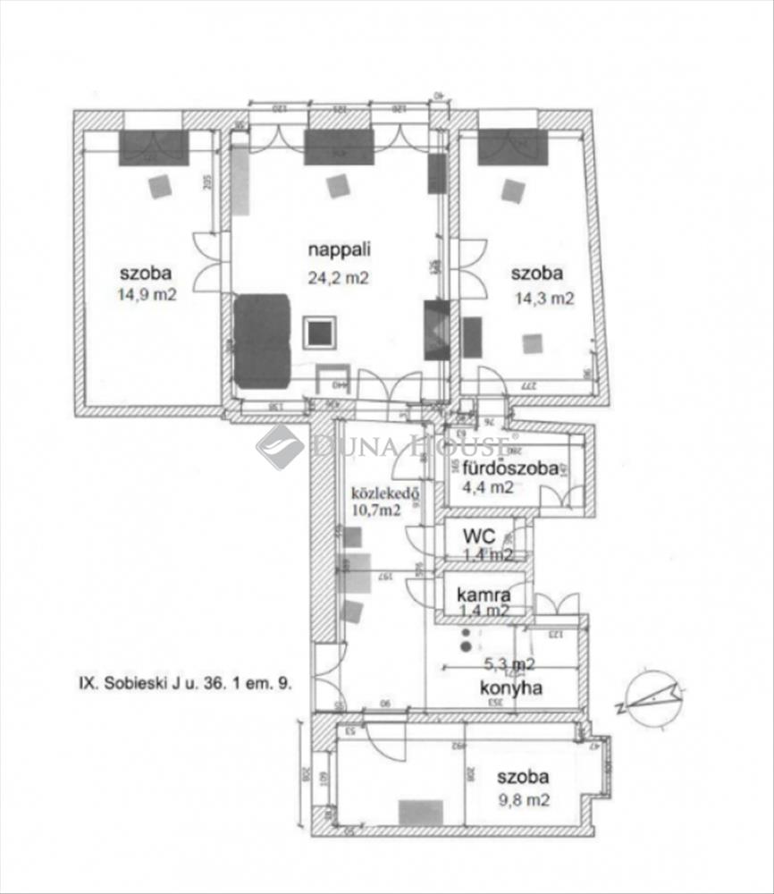 Eladó tágas, felújított polgári lakás a IX. kerület rehabilitációs részén!Eladásra kínálunk egy gyönyörűen felújított, világos, 85 m²-es, 3+ fél szobás polgári lakást Budapest IX. kerületében, a Sobieski János utcában, egy rendezett, 1925-ben épült, polgári társasház első emeletén.