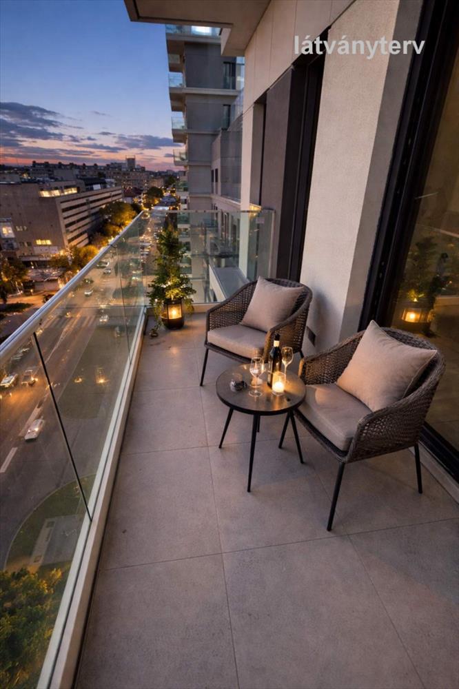 A 8. emelet nemcsak fényt, hanem levegőt is ad. Az erkély pedig napi szinten használható plusz tér, nem csak „dísz”.