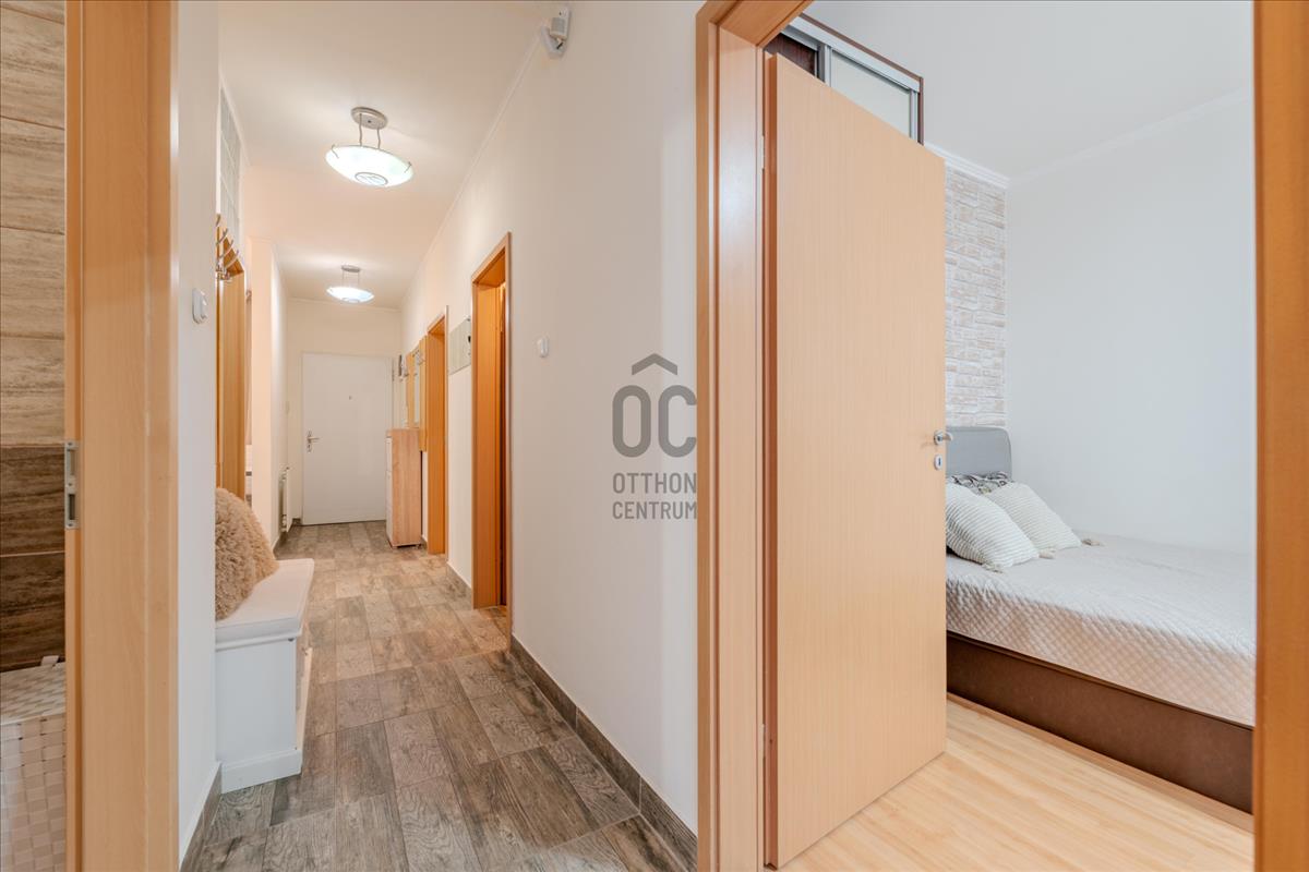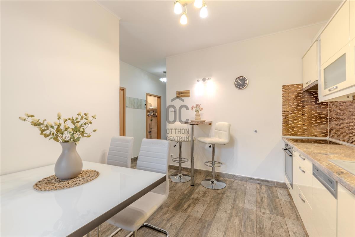 Modern kényelem: Beépített bútorok, tágas gardróbszekrények, klíma és házközponti fűtés garantálja a gondtalan mindennapokat.