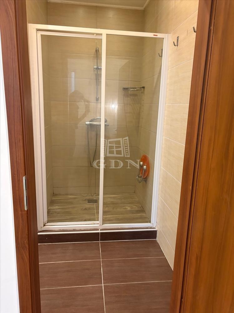 A nappali plusz hálószobás 66 nm alapterületű földszinti lakás fűtéséről házközponti kazán gondoskodik.