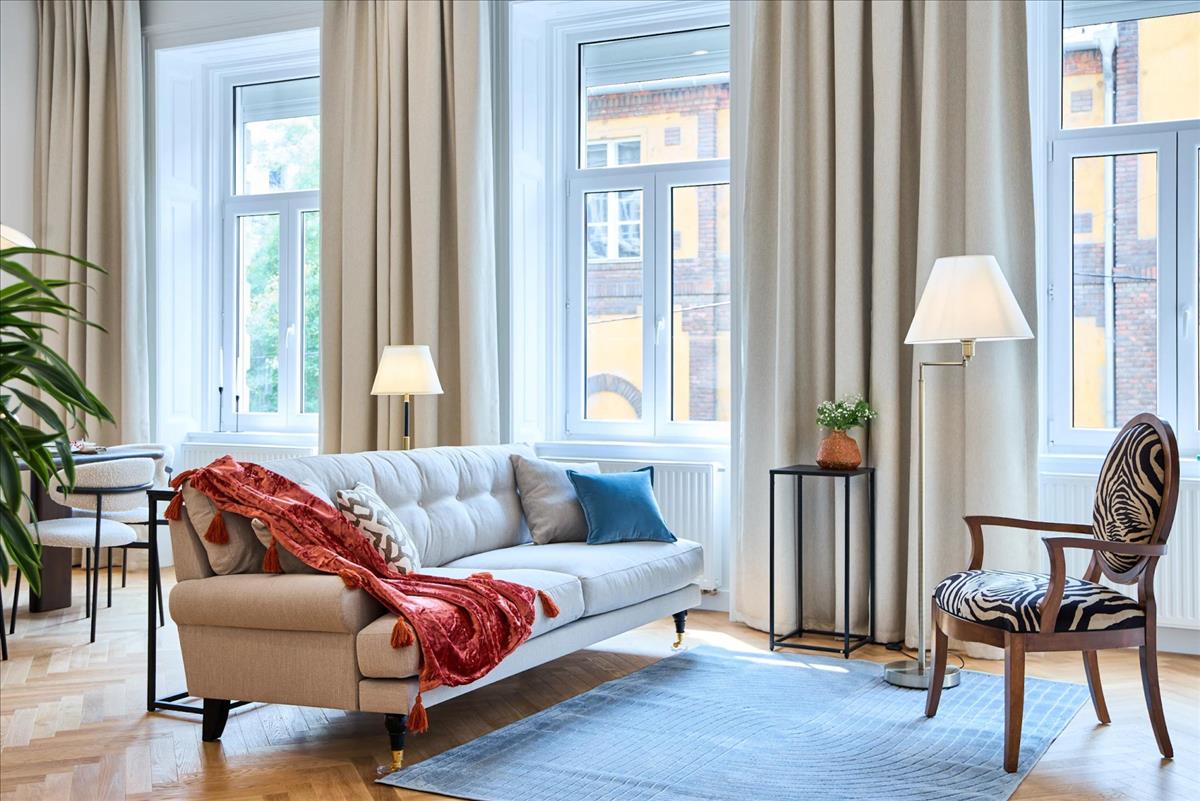 A complete renovation with replacement of all utilities. Design project in a modern European style. New energy-efficient heating and air conditioning. High-quality materials, furniture and household appliances. Modern oak parquet. The Parliament, Basilica, Opera, Margaret Island, shopping and business centers, as well as several educational institutions are within walking distance. 3 Minutes to the metro.