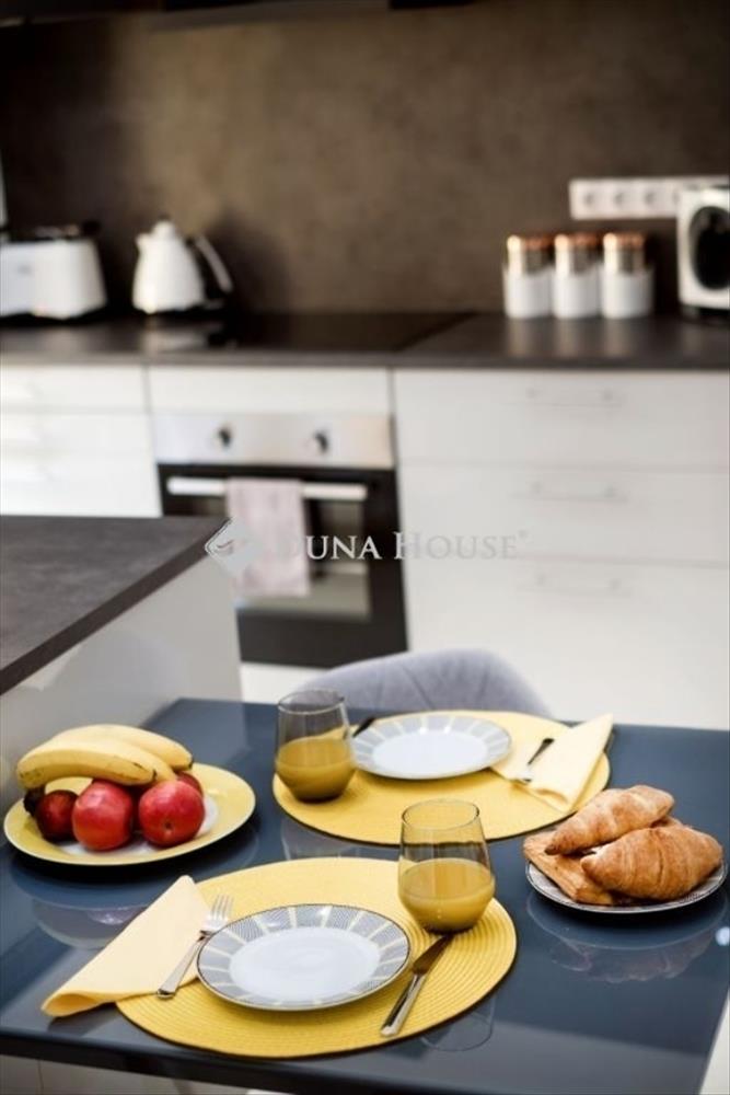 A teljesen gépesített konyha a vételár részét képezi: hűtő, mosogatógép, sütő és minőségi konyhabútorok várják új tulajdonosukat.