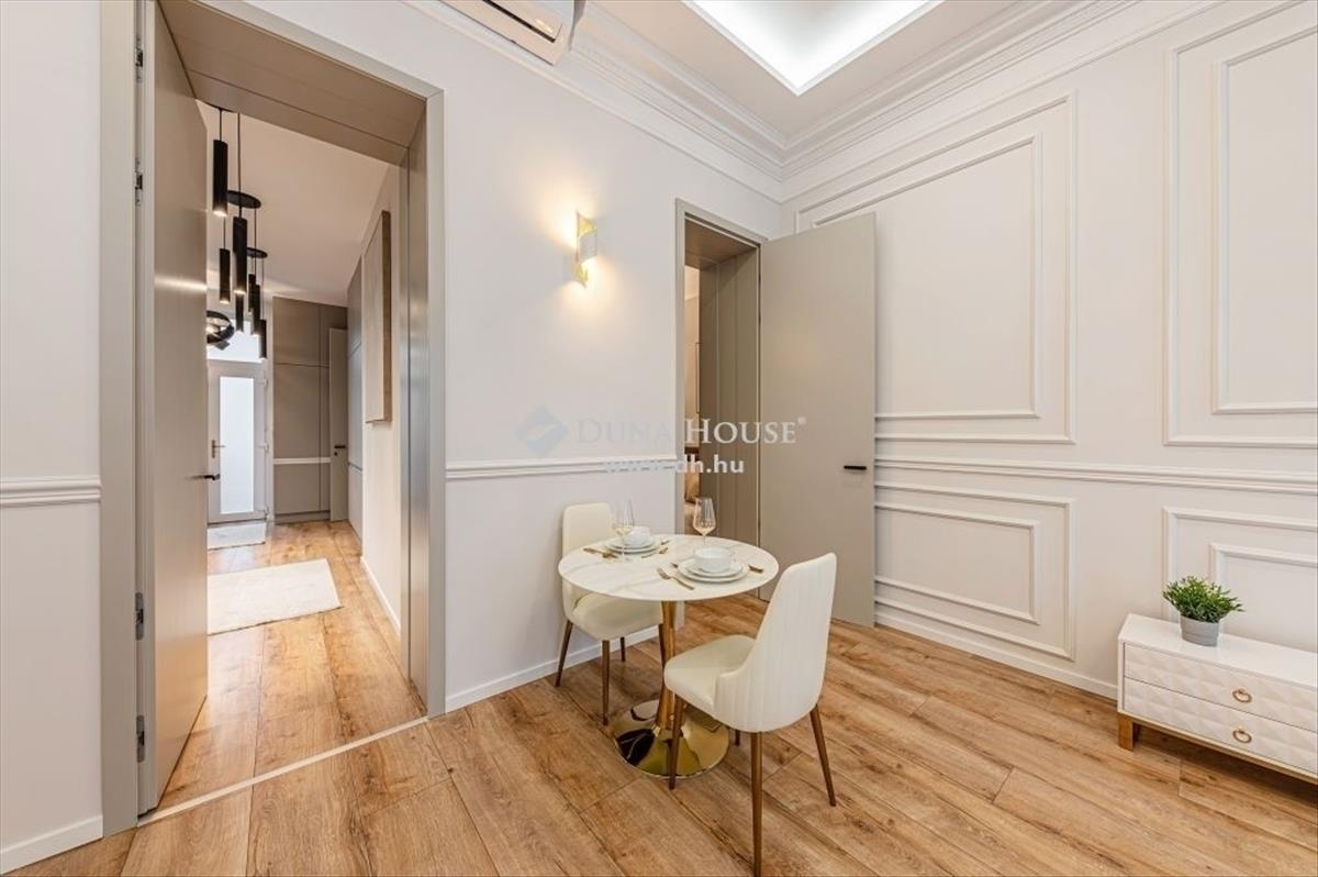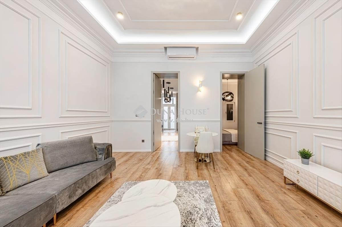 Eladó egy teljeskörűen felújított, 3. emeleti, elegáns, luxus lakás az 5. Kerulet egyik legszebb épületében! Az 5. kerület frekventált részén eladóvá vált ez a közel 60 m2-es, utcai nézetű, luxus minőségben felújított és berendezett lakás, amely egy gyönyörűen felújított állapotú Társasház harmadik szintjén található. a belsőépítész és a tulajdonos nagy hangsúlyt fektetett a minőségi kivitelezésre a praktikusabb és jól használható elrendezésre, ezzel is minél jobban kihasználva a lakás alapvetően kimagaslóan jó adottságait. Az ingatlanban található: 1nagyobb méretű nappali, 1 hálószoba, 1 fürdőszoba, wc, konyha, előtér. a lakásban az összes ajtó és a bútorok is egyedileg tervezett és gyártott exkluzív darabok, rengeteg pakoló felülettel és a legújabb technológiával. Minden térben található egy-egy jól kihasználható bútor, így például az előszobában lévő szekrénysor is rengeteg rakodófelületet biztosít az ott lakók számára. a lakás teljesen gépesített, mosógéppel, mosogatógéppel, beépített konyhával és hűtő-fűtő klímával felszerelt. Az ingatlanban belépve érezhető, hogy a kellemes színvilág miatt tökéletes a harmónia. a Hálószoba falára és a lakásban több helyre is dekor tapéta került, melyek szépsége különleges hatást kölcsönöznek az ingatlannak. a fürdőszobákban kiváló minőségű szaniterek, és a lakás stílusához illő design burkolatok kerültek kivitelezésre. Több helyen is van rejtett világítás és a falon található stukkó miatt, nagyon otthonos. Minden helységben külön termosztattal szabályozható a hőmérséklet és az ablakon, színezett aluminium redőnyök vannak. Az ingatlan egésznap rendkívül világos és csendes a kilátás pedig gyönyörű városi panoráma. Egy ilyen minőségben kivitelezett munka legalább 2 év, ezért minden tekintetben páratlan! ! Lokáció szempontjából az ingatlan elhelyezkedése kiváló üzletek, éttermek látványosságok, tömegközlekedés a Margitsziget és az Országház is csak 6 perc sétatávolságra található. Amennyiben a belvárosban kényelmes, modern, stílusos, elegáns, luxus otthont keres saját vagy befektetési célból, kérem forduljon hozzám bizalommal!