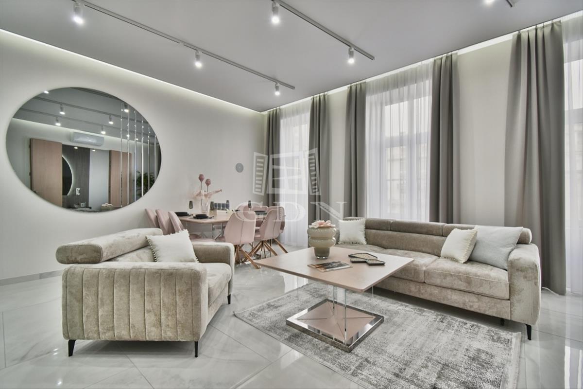Luxus, kényelem, ELEGANCIA! V. kerületben, a Károly körúton -Zsinagógára néző kilátással-, eladásra kínálunk egy 117 m2-es (valóságban 121 m2), 4 szobás (3 háló + amerikai konyhás nappali), dupla komfortos, egyedien és prémium minőségben felújított exkluzív, luxus lakást.