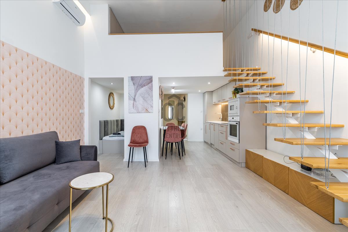 69 m², két lakássá alakítva (44 és 25 m²), mindkettő galériázott, jól elkülönülő életterek