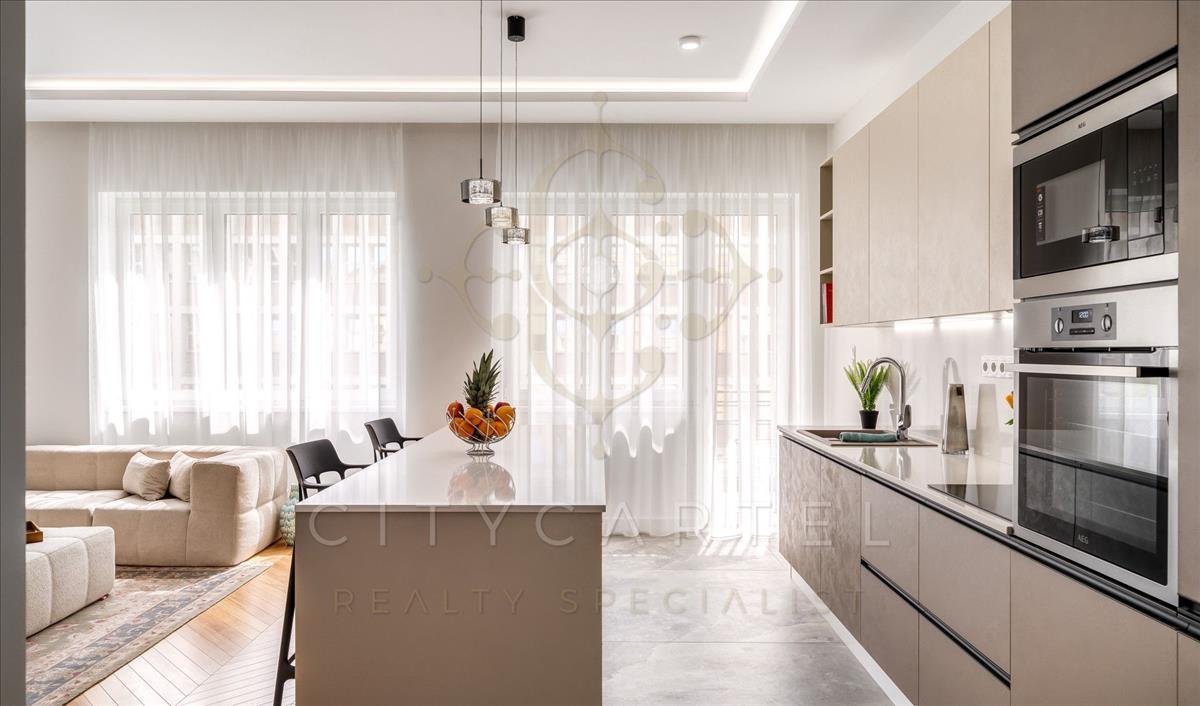 eladásra egy 100 m²-es, 4, 5 m² erkéllyel rendelkező, luxusminőségben felújított lakást, amely