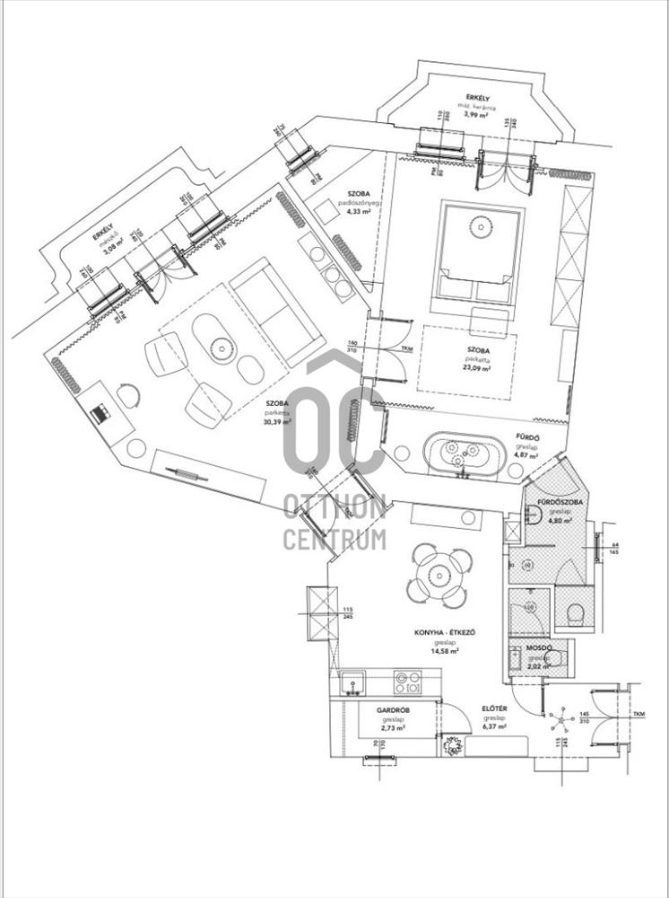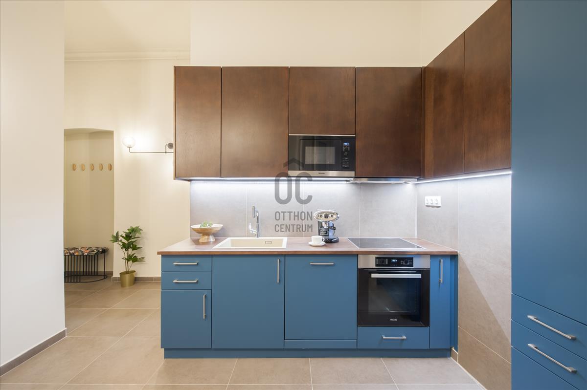 A lakás 2020-ban esett át teljes felújításon, nem volt használva egyáltalán tehát a képekhez hűen hibátlan állapotú minden. Hatalmas dupla üvegfelületeknek köszönhetően állandóan természetes fény árad be, melyeknél a belső üveg ki lett cserélve így az otthon csendes és békés. Két darab erkély is tartozik a lakáshoz, a belső nyugalmas terekből kisétálva az igazi, városi pezsgés érezhető. a konyha teljes felszerelése a legmodernebb Miele gépeket kapta és a beépített szekrényekben minden kényelmesen elfér. a nappalit és hálószobát igazán letisztult stílus jellemzi, könnyen saját ízlésre formálható, bár így is teljesen megállja a helyét. a hálószobában található egy igazán kuckós olvasó sarok, mely tökéletes egy homeoffice délutánra akár egy esős napon egy kávé mellett és még a városra is rálátni. Az egyik fürdőszoba a hálószobán keresztül közelíthető meg, a másik a bejárat mellett található.