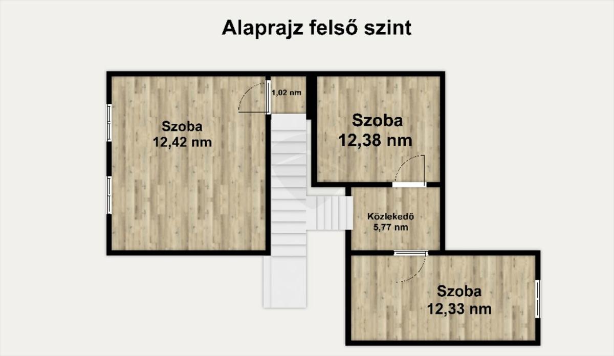 Felső szinten a szobákban a belmagasság: 2, 35 m