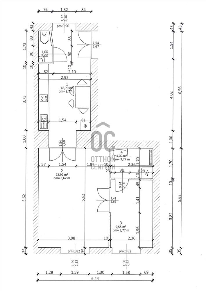 Méret és elrendezés: 50 nm , másfél szoba, külön fürdőszoba és wc, praktikus elosztással.