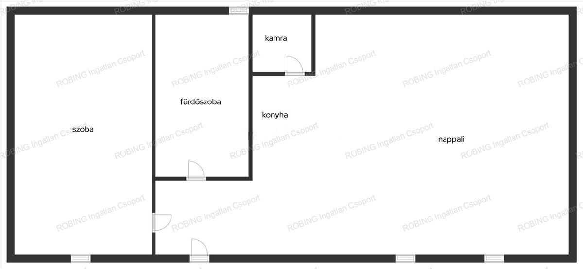 54Nm-es, kiváló elosztásának köszönhetően megtalálható benne egy tágas amerikai konyhás nappali, kamra, előtér, ablakos fürdő, illetve egy hálószoba.