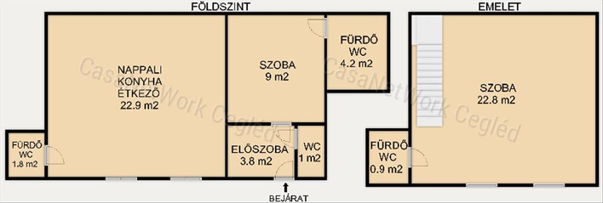 - Fürdő + Wc 0. 9 m2