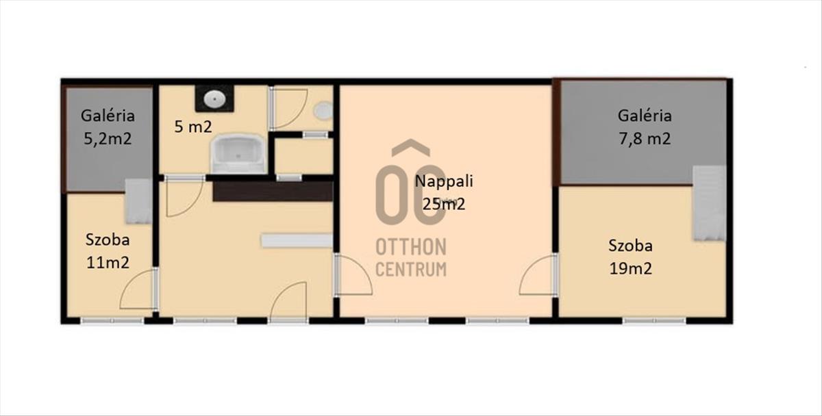 - 3 szoba (2 szoba galériázott);
