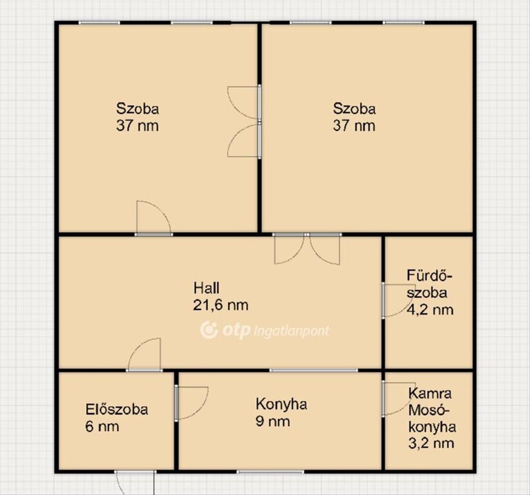Alapterület: 118 nm (2 szoba + hall, tágas terek)