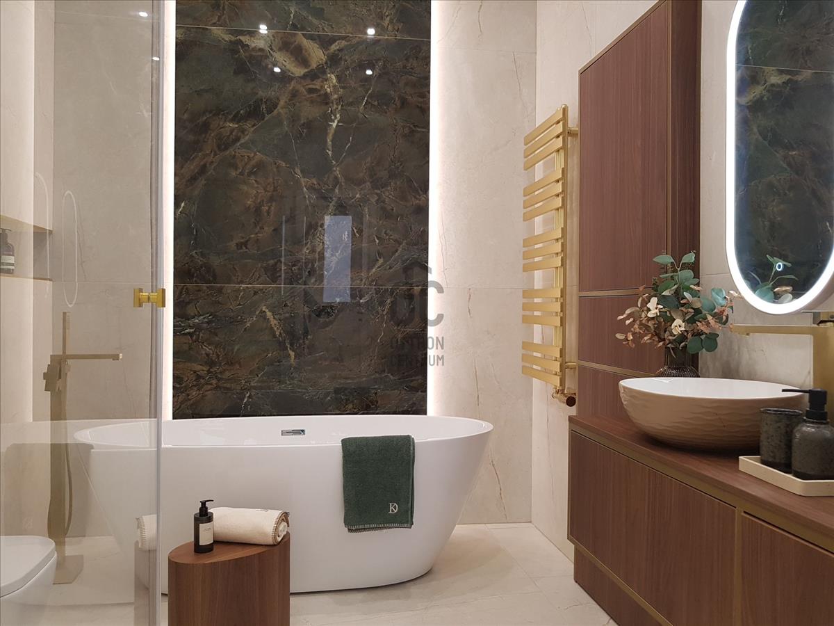 A lakás központi tere az impozáns, közel 40 nm-es nappali, mely a tágas (32nm) konyha-étkezőhöz csatlakozik. a fő hálószoba hozzá kapcsolódó fürdőszobával utcai nézetű, míg a két kisebb hálószobája ( 16 és 10 nm) a belső kertes udvarra néz. a közel 5 méteres belmagasságot kihasználva az udvari "szárny" felett épített galéria került kialakításra remek teret adva 3. Hálószobának vagy dolgozószobának illetve itt lett berendezve egy mindent elrejtő gardróbszoba. a mindennapi kényelmet további két fürdőszoba biztosítja. a fűtés és a melegvíz ellátás kondenzációs gázkazánnal történik, a hűtésről klímaberendezések gondoskodnak.