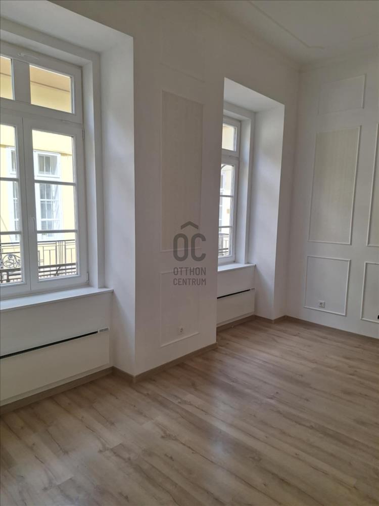 A 90m²-es, teljes körűen felújított lakás a háromszintes épület legfelső szintjén található, így kiváló természetes fényviszonyokkal rendelkezik. a lakás kialakítása modern, mégis megőrzi az épület történelmi eleganciáját: