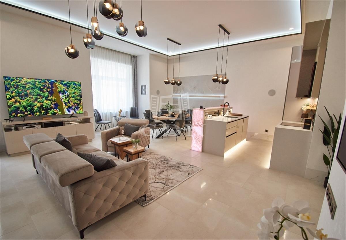 V. kerületben, a belváros szívében, eladásra kínálunk egy 100 m2-es (valóságban 107 m2), 3 szobás (2 háló + amerikai konyhás nappali), dupla komfortos, egyedien és prémium minőségben felújított exkluzív, luxus lakást.