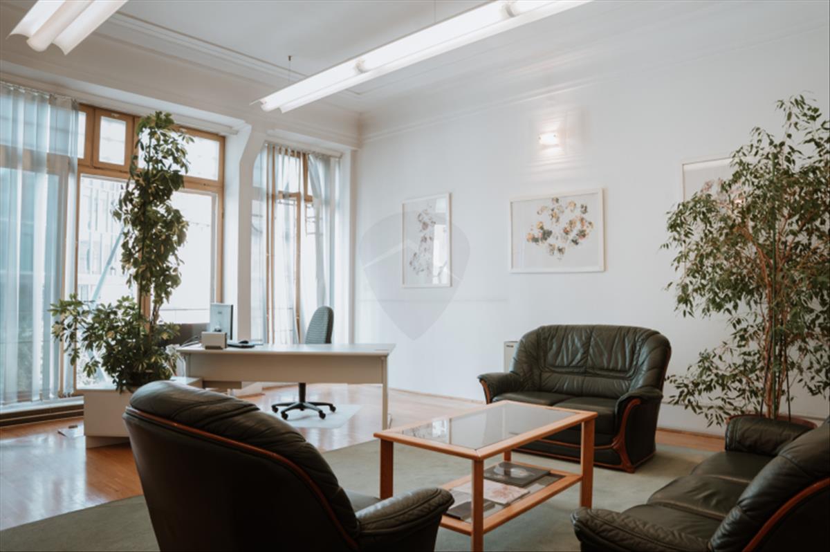 A belvárosi lakás világos terekkel és tágas szobákkal -irodákkal rendelkezik, amelyek lehetőséget adnak a különböző elrendezések kialakítására.