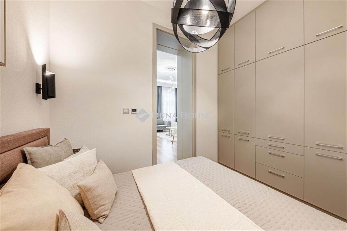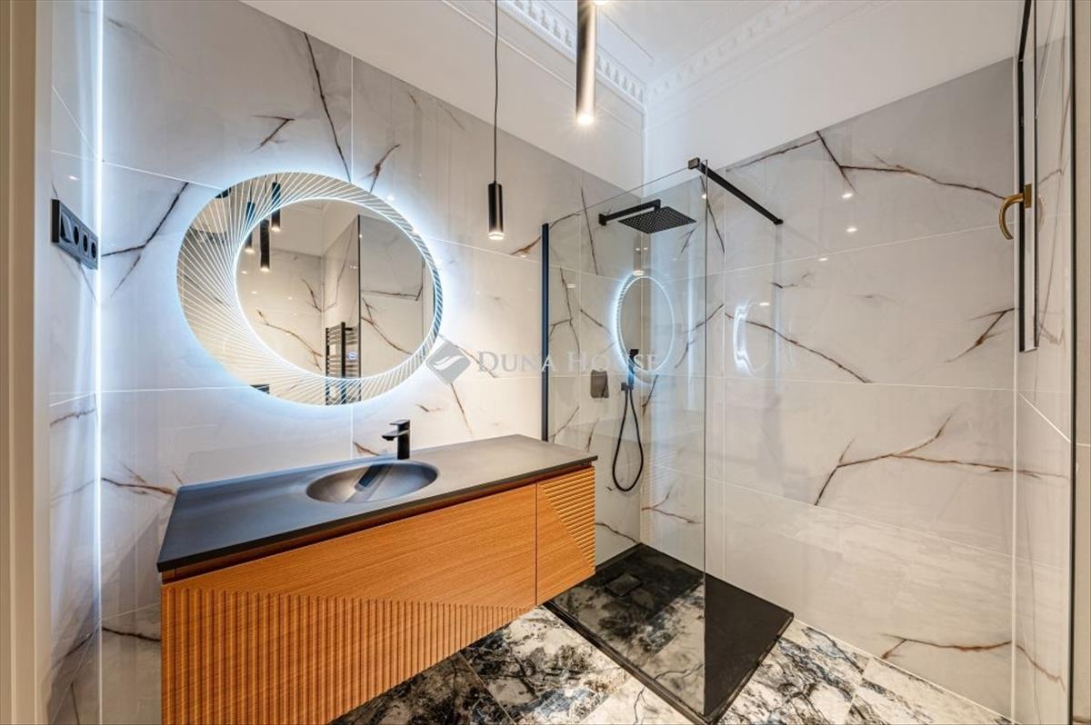 A Hálószoba falára és a lakásban több helyre is dekor tapéta került, melyek szépsége különleges hatást kölcsönöznek az ingatlannak. a fürdőszobákban kiváló minőségű szaniterek, és a lakás stílusához illő design burkolatok kerültek kivitelezésre. Több helyen is van rejtett világítás és a falon található stukkó miatt, elegánsan otthonos.
