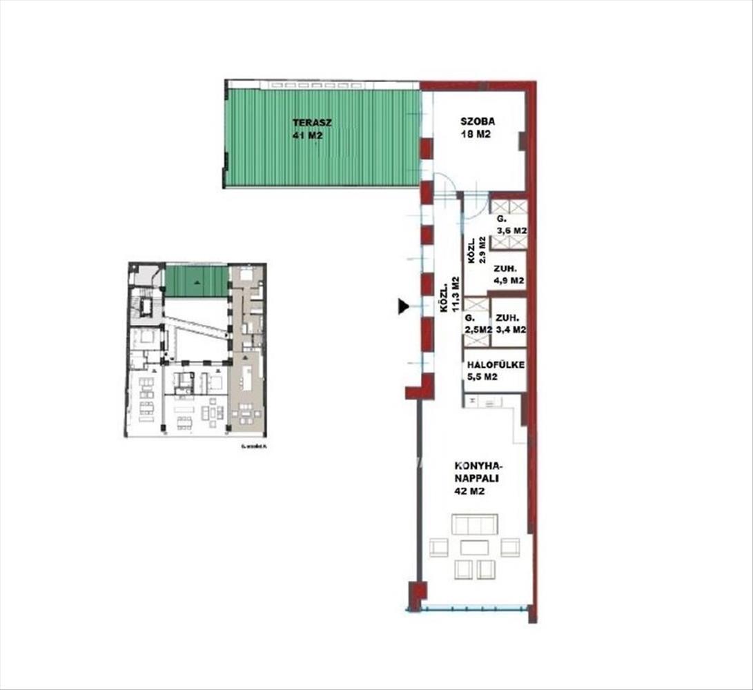 Tökéletes lokáció, tágas, világos terek és nagy belmagasságok, industrial stílus jellemzi a lakásokat. a hirdetésben szereplő lakás helyiségei: amerikai konyhás nappali, 1 hálószoba, 1 hálófülke, 2 fürdőszoba, gardrób, közlekedő és egy 41 m2-es terasz kilátással a Gellért-hegyre. a nappali a Múzeum körútra néz, padlótól a mennyezetig érő 5 méter széles ablakfelülettel.
