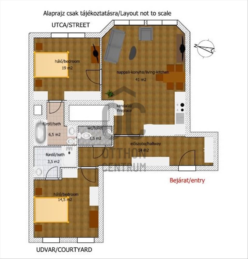 - tágas és világos nappali-konyha kandallóval, előszoba gardróbszekrénnyel,