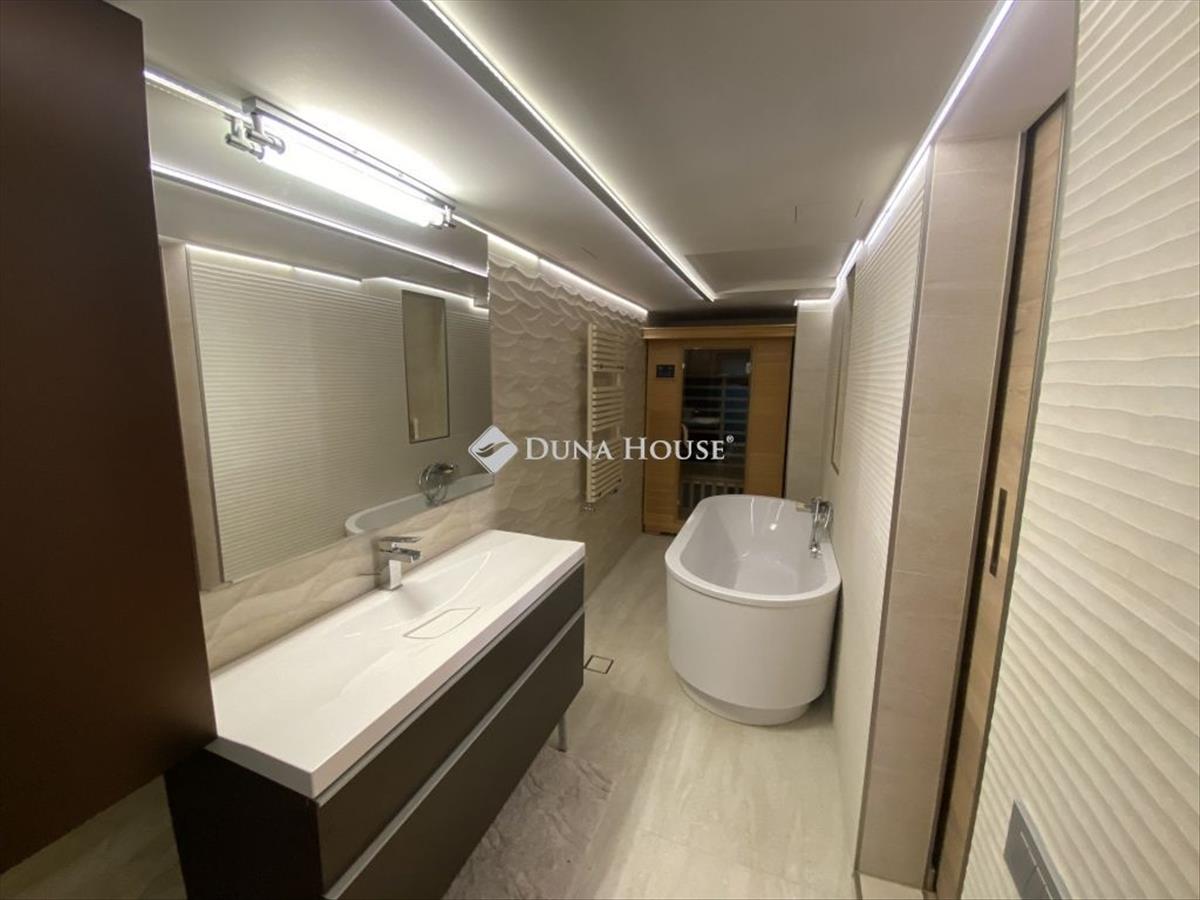 Rövid ÖSSZEFOGLALÓRitka lehetőség a belváros szívében! Eladó egy exkluzív, teljeskörűen felújított, 93 m²-es lakás a patinás József nádor téren, egy klasszikus, lifttel ellátott épület 2. emeletén. Az ingatlan egyedi belsőépítészeti megoldásokkal, minőségi, helyben tervezett bútorokkal, két külön bejárattal és egy intim hangulatú terasszal rendelkezik. a lakásban két kényelmes hálószoba, két fürdőszoba – az egyik káddal és szaunával, a másik zuhanyzóval – biztosítja a mindennapok luxusát. a korszerű gépészet és a modern extrák – mint a légkondicionáló, alumínium redőnyök, illetve riasztórendszer – még élhetőbbé teszik ezt a különleges otthont. a lakás részletei 3 szoba, ebből 2 hálószoba 2 fürdőszoba: egyik káddal és szaunával, másik zuhanyzóval 93 m²-es alapterület Egyedi, prémium bútorzat helyi tervezéssel 2 bejárat – ideális akár irodának is Lifthofból kialakított saját terasz Alumínium redőnyök minden ablakon Teljeskörű gépészeti és esztétikai felújítás Légkondicionálás, riasztórendszerÉPÜLET és környezeta József nádor tér Budapest egyik legnemesebb helyszíne, a luxus lakókörnyezet és a történelmi építészeti miliő tökéletes találkozása. a társasház kiváló állapotú, elegáns homlokzattal és korszerű lifttel rendelkezik. a második emeleten elhelyezkedő lakás nemcsak világos és csendes, de az udvari elrendezés és a belső terasz révén különösen bensőséges atmoszférát nyújt. BELSŐ téra belső kialakítást a letisztult luxus, valamint az átgondolt, funkcionális elrendezés jellemzi. a központi tér egy tágas, reprezentatív nappali, amelyhez két oldalon külön nyíló hálószobák és fürdőszobák kapcsolódnak. Az egyedi bútorok és a kiváló minőségű burkolatok a lakás karakterét és eleganciáját hangsúlyozzák. a fő fürdőszobában szauna is helyet kapott – ez a funkció ritka különlegesség a belvárosi lakáspiacon.A Duna House teljes kínálatával kapcsolatban forduljanak hozzám bizalommal!