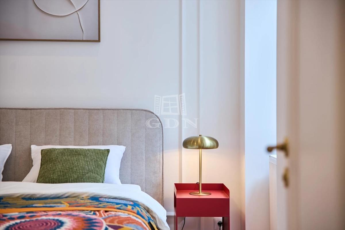 A lakás minden részlete új: modern gépészet, energiahatékony fűtés és hűtés, tölgyfa parketta, designbútorok és minőségi háztartási gépek.