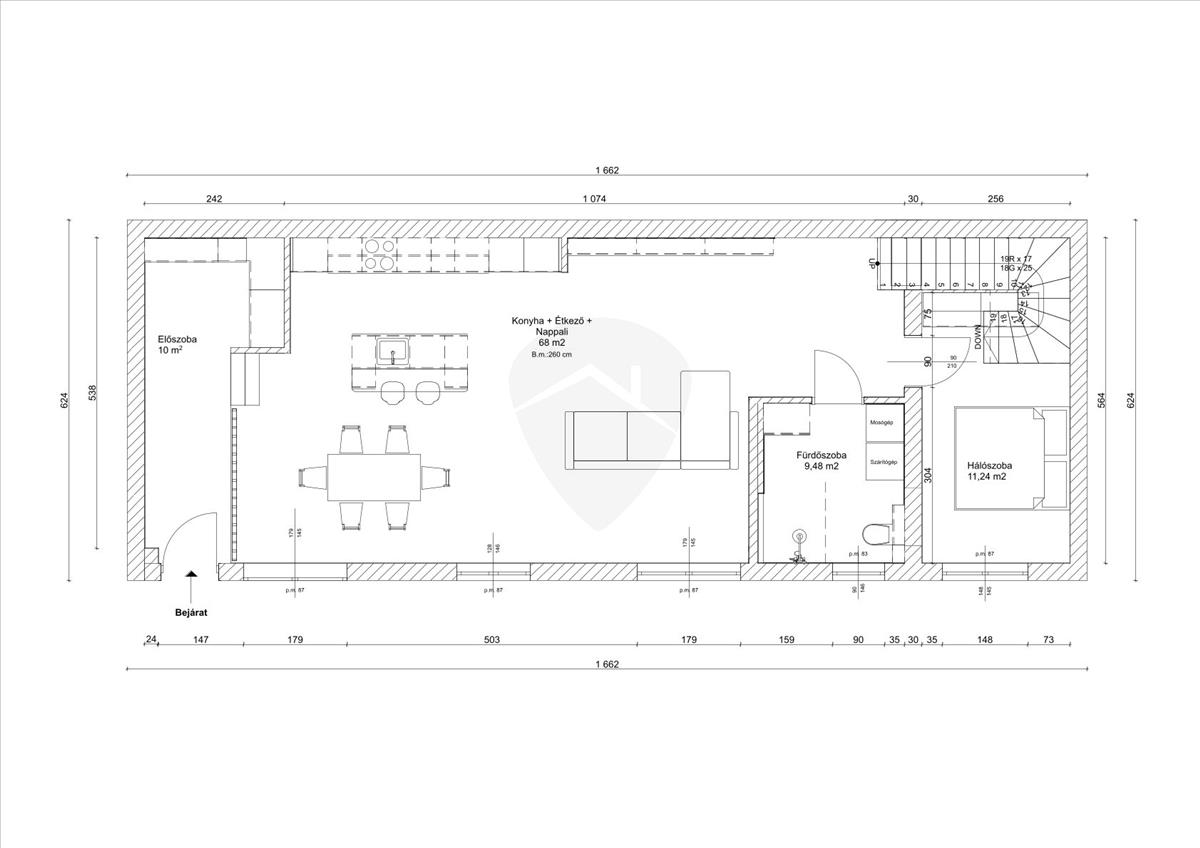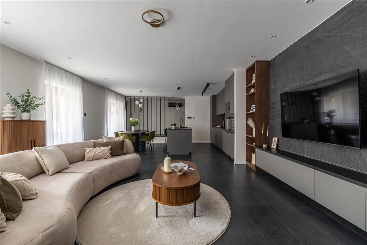 - 99 Nm belső lakótér, elegáns amerikai konyhás nappali + 1 vagy 2 hálószobás kialakítással.