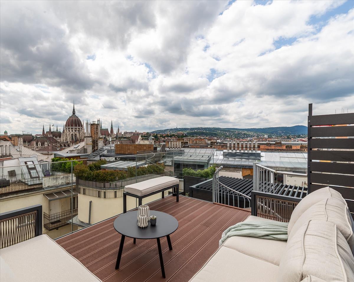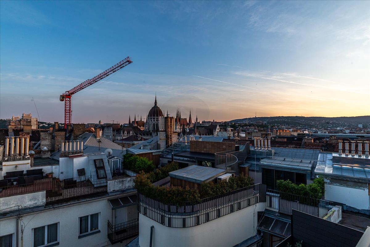 Emeld új szintre az estéidet ebben a diszkrét, kétszintes tetőteraszos penthouse-ban Budapest felett, ahol a város fényei és a Parlament minden nap lenyűgözi Önt naplementétől éjszakáig.