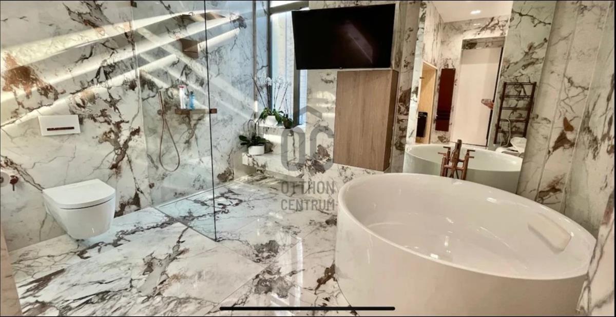 Nagyméretű kád, külön üvegzuhany, lcd tv és külön WC