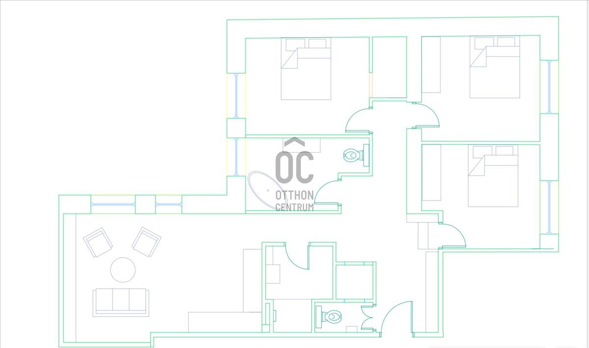 Elrendezés: Nappali-étkező-konyha egy légtérben, 3 hálószoba, 2 fürdőszoba, külön mosdó, gardróbszoba, közlekedő, saját használatú előtér.