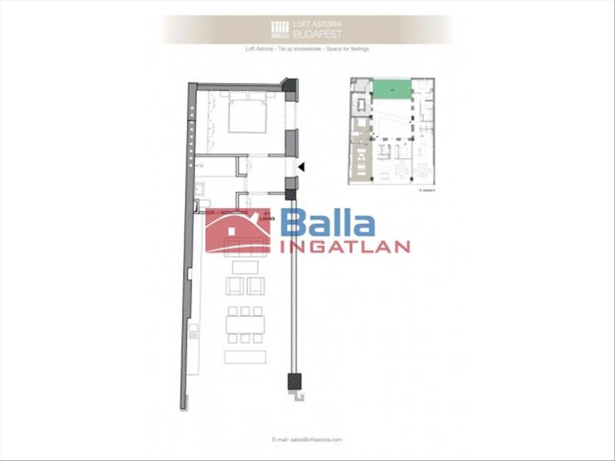 Az eladó ingatlan egy hatalmas nappali, konyhából, tágas fürdőszobából walk-in zuhanyzóval és nagy méretű hálóból áll. a közlekedőben beépített szekrények vannak. a lakás különlegessége a közel 5 méteres faltól-falig húzódó ablak, ahonnan a belvárosra láthatunk rá, a hatalmas belső terek és az osztott, fémkeretes ablakok, ajtók, amelyekkel elválasztják ezt a teret.
