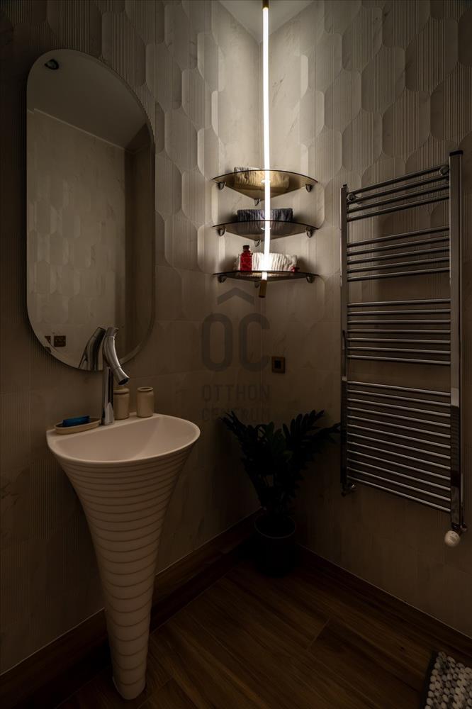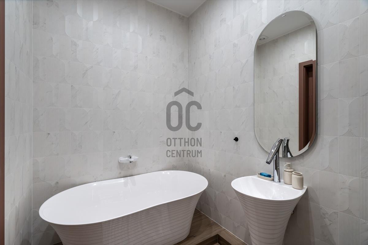 A lakás világos, jó elosztású. Mindkét hálóhoz tartozik fürdőszoba. a nappali tágas, és az egész lakásra jellemző a különlegesen magas minőségű anyagok használata, és a lakberendezői elegáns dizájn.