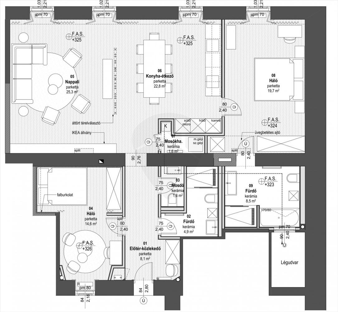 Az ingatlan tágas, világos terekkel rendelkezik, melyek között két nagy szoba és két luxus minőségű fürdőszoba található, így tökéletes választás lehet mind családok, mind pedig bérbeadási célú befektetők számára. Az egyedi tervezés és a prémium kivitelezés garantálja, hogy az otthon minden részlete a legmagasabb szintű kényelmet és esztétikai élményt nyújtja. a tágas, amerikai konyhával egybenyitott nappali ideális helyszíne a baráti összejöveteleknek, míg a lakás gondosan beépített bútorai és modern gépesítése azonnali beköltözést tesz lehetővé. a fűtésről gáz cirkó rendszer gondoskodik egyedi méréssel, míg a légkondicionáló berendezés a nyári hónapokban is kellemes hőmérsékletet biztosít, így minden évszakban maximális komfortot élvezhet.