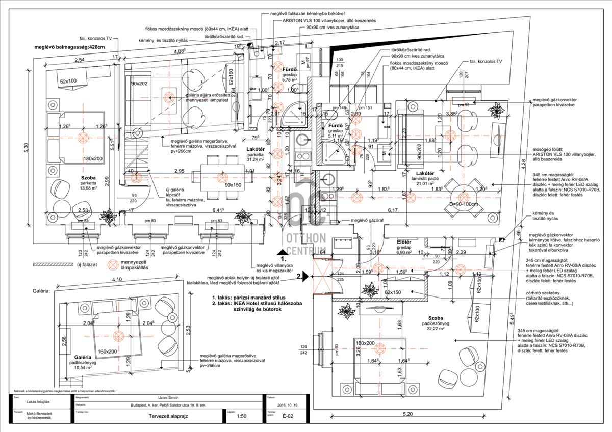 1-Es lakás: 50m²