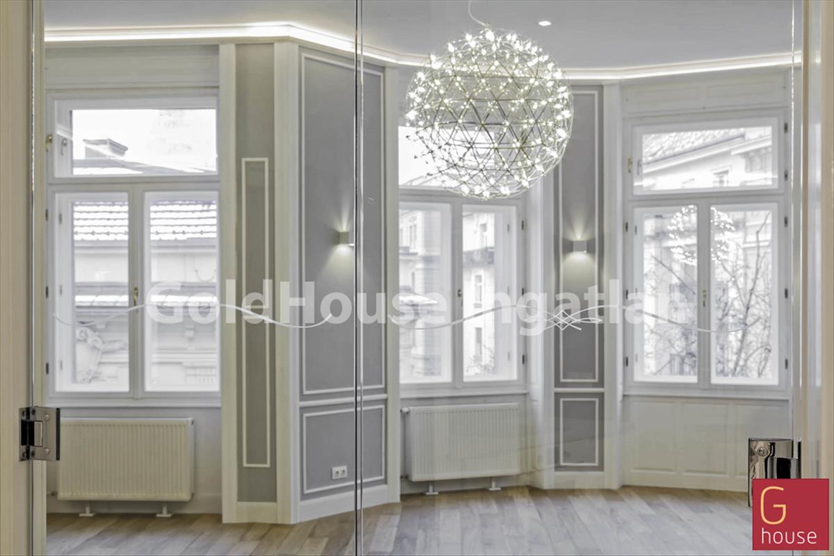 Eladó Budapest belvárosában, az V. kerületben az Irányi utcában egy frissen felújított 176 m2-es luxus lakás.