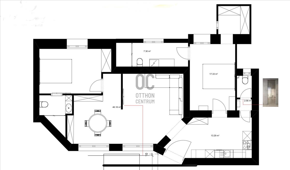 Eladásra kínálok a Váci utcában egy 1. emeleti, felújítandó lakást kész látványtervekkel, és minden egyéb tervvel, melyet tervező álmodott meg, és mely kivitelezése is lehetséges külön megállapodásban.A lakás jelenleg tényleg vissza van bontva, és az alaprajz mutatja a jelenlegi válaszfalakat. Első körben így ebben az állapotban szeretnénk értékesíteni.