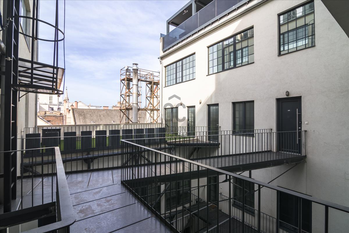 A ház adottságaiból fakadóan a lelógó betongerendák, a belső acélszerkezetek, a belmagasság mind támogatják a loft hangulatot, ami talán az utolsó ilyen hiteles épület a belvárosban.